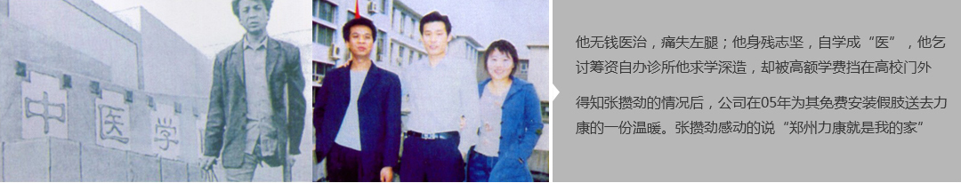 鄭州市力康假肢矯形器有限公司(簡稱力康),是一家專業從事假肢矯形器的設計、研發、制作及裝 配的專業機構。成立于1992年是河南省唯一一家福利企業。力康下設業務部、技術部、住院部、康復 部、售后服務部,并配有現代化的裝配車間和功能齊全的訓練大廳,為殘疾朋友康復訓練提供了可靠 保障??偨浝泶┐骷僦嗄辏兄S富的臨床經驗和親身體會;多年來,力康已為全國幾十萬名殘疾 朋友安裝上舒適、美觀、耐用的假肢和矯形器具,使他們更大限度地恢復了正常的工作和生活。“產 品即人品”的質量理念、先進的技術、實惠的價格、完善的售后服務是力康取勝的法寶……